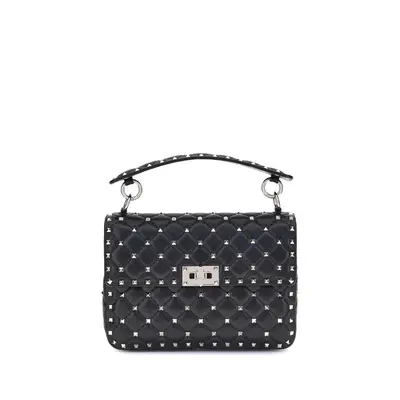 Valentino Garavani’s Rockstud Spike medium Shoulder Bag is an iconic model with a bold character, crafted in diamond-quilted leather and decorated with gold-tone Rockstud studs across the surface. Featuring a removable studded black leather top handle and adjustable smooth leather shoulder strap, it combines style and practicality. The well-organized interior features two zippered pockets and three card slots. The front flap and swivel closure completes the design with a sophisticated touch.