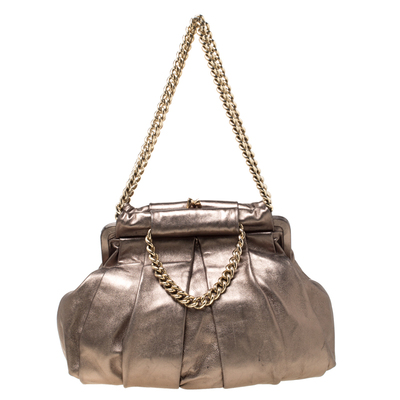 This Loubinette hobo from Christian Louboutin is crafted from leather and features an artistic silhouette. It flaunts pleats on the exterior, zip detailing and chain handles. The top closure opens to a spacious fabric lined interior that can house all your daily essentials. You are sure to make a statement when you carry this bag.