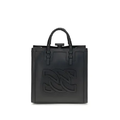 Casadei’s Demetra Tote Bag is a versatile and chic accessory, featuring two tubular handles and an embossed logo on the front that emphasizes its elegance. The adjustable and removable shoulder strap allows for different modes of use, while the leather hook-and-eye closure provides security and refined style.