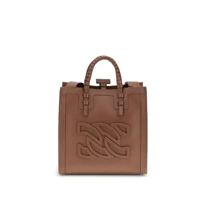 Casadei’s Demetra Tote Bag is a versatile and chic accessory, featuring two tubular handles and an embossed logo on the front that emphasizes its elegance. The adjustable and removable shoulder strap allows for different modes of use, while the leather hook-and-eye closure provides security and refined style.
