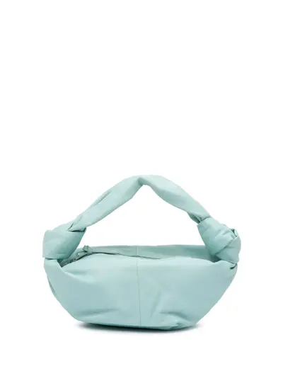 leather body flat leather handle with knot details top zip closure blue Serial Number: S02272779F This item has no inclusions. Condition: GOOD. This previously owned and used item is in good condition with minimal signs of use. This may include fading of material or plating and scratches. Please refer to the photos on this product page for a detailed view of the item, including any damages declared.