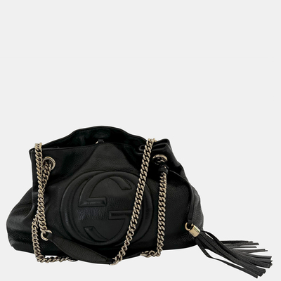 Gucci Black Pebbled Leather Medium Soho Chain Shoulder Bag 722729