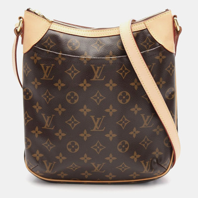 The Odeon PM by Louis Vuitton is crafted in iconic brown Monogram canvas with natural leather trim and gold tone hardware. With its sleek, compact silhouette and adjustable strap, this crossbody shoulder bag offers timeless style and everyday practicality.