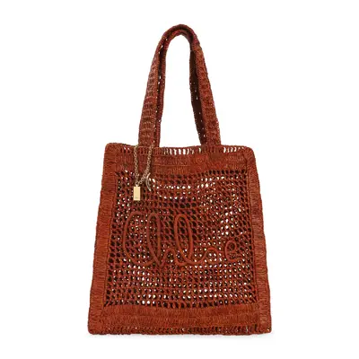 Chloe Clay brown Raffia Summer Banana Tote Bag. Pure clay brown raffia tote bag, top handles, side gold-tone metallic chain detail with logoed lock, front tonal embossed logo, perforated details, one main compartment. Colore: Nude & Neutrals Composizione: Raffia, 100%RAFFIA Made in: Madagascar Dimensioni: W:33cm H:37cm D:2cm Codice articolo: CH25US901P0826MCLAYBROWN