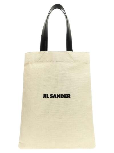 Jil Sander-Flat Shopper Tote Bianco/Nero-Donna 47299987603796