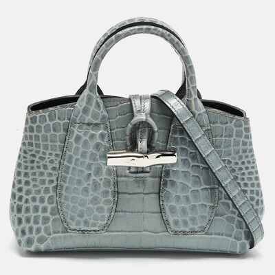 Longchamp Blue Croc Embossed Leather Roseau Crossbody Bag 1209018