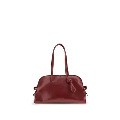 The Bowling Bag by Jacquemus in glossy leather with a vintage finish is a refined and contemporary accessory. The double-zip closure and coordinated leather tubular handles, enhanced by an elegant knotted detail, highlight its unique design. The embossed logo completes the silhouette, while the interior pocket adds functionality without sacrificing style.