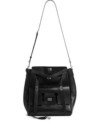 black calfskin leather adjustable detachable shoulder strap silver-tone finish hardware clasp closure straps removable key ring
