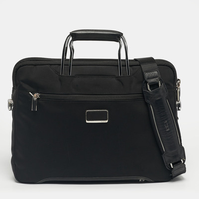Tumi Black Leather and Nylon Hamilton Slim Briefcase Bag 1227581