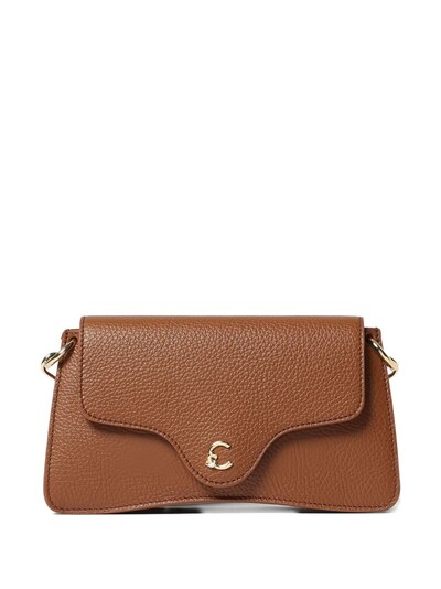 brown grained texture gold-tone hardware magnetic fastening logo detail adjustable detachable strap
