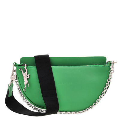 Longchamp Ladies Shoulder Bag. SKU: 10224HDS531. Color: Lawn. Longchamp Smile S Crossbody Bag. Compact yet striking, the Smile S Crossbody is crafted from smooth calfskin leather in a vibrant lawn green hue. Its sleek silhouette is accented by silver-tone hardware and a jacquard-lined interior featuring Longchamp ribbon detailing. Designed with a top zip closure, this lightweight bag offers a removable strap for versatile stylingwear it crossbody, on the shoulder, or carry it by the handle. Material: Calfskin leather.Lining: Polyester jacquard with Longchamp ribbons. Dimensions: 10.2 L x 5.5 H x 1 W.Handle Drop: 7.9.Strap Drop: 18.9.