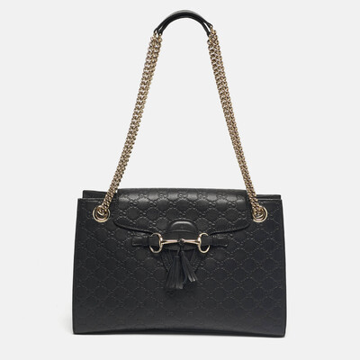 Gucci Black Guccissima Leather Large Emily Chain Shoulder Bag 1236375