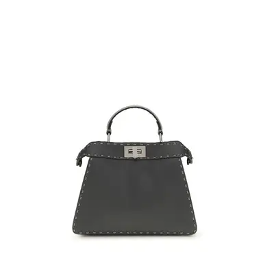 The Peekaboo ISeeU Small by Fendi is crafted from brown Cuoio Romano leather with cappuccino-colored side panels, featuring a natural grain achieved through a metal-free tanning process.The leather-lined interior is divided into two compartments by a rigid partition and includes a flat pocket. Signature twist-lock closures on both sides, a silver Selleria plaque, and palladium-finish hardware complete the design.Equipped with a leather top handle and an adjustable strap, it can be carried by hand, over the shoulder, or cross-body.