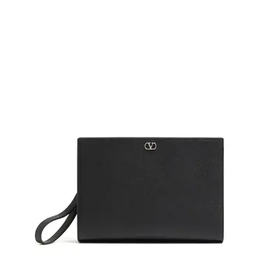 black top zip fastening detachable wrist strap internal card slots main compartment Colore: Nero Composizione: Composizione Esterna Pelle di Vitello: 100,0% Made in: Italy Dimensioni: depth: 4.5 centimetres, height: 18.0 centimetres, width: 28.0 centimetres Codice articolo: 7Y0P0AN7UAG0NO