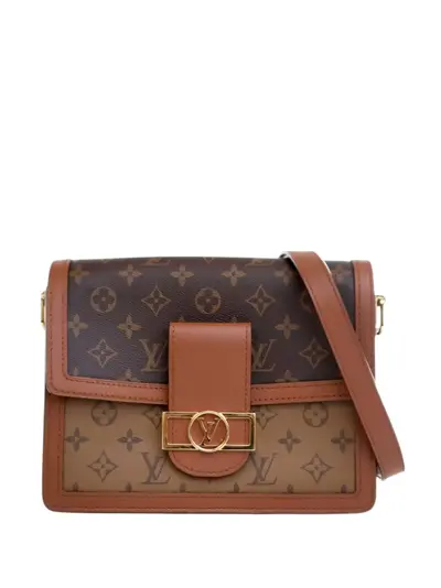 The Dauphine features a monogram reverse canvas body, a gold tone chain and flat leather strap, a front flap with magnetic closure, and interior zip and slip pockets. Brown. Serial Number: GI4129. Inclusions: dust bag, shoulder strap, box. Condition: EXCELLENT. This previously owned item is in near-perfect condition with no signs of damage or use. Due to the exclusivity of this item and its limited availability, processing and delivery might take longer than usual. Please refer to the photos on this product page for a detailed view of the item, including any damages declared.