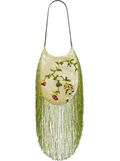 beige/multicolour floral embellishment beaded fringe top handle internal zip pocket This piece comes complete with a protective dust bag.