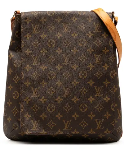 The Musette Salsa features a monogram canvas body, an adjustable vachetta leather shoulder strap, a front flap with a magnetic snap closure, and an interior slip pocket. Brown. Serial Number: AS0979. This item has no inclusions. Condition: GOOD. This previously owned and used item is in good condition with minimal signs of use. This may include fading of material or plating and scratches. Declared Damages: Handle/Strap Feature(s) Moderate Water Mark. Please refer to the photos on this product page for a detailed view of the item, including any damages declared.