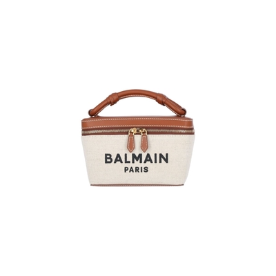 Balmain Ladies Tote. SKU: DN1BG921TCFE_GEM. Color: Cream. Balmain B-Army Vanity Beige Canvas Bag. 58% Cotton, 42% Flax.