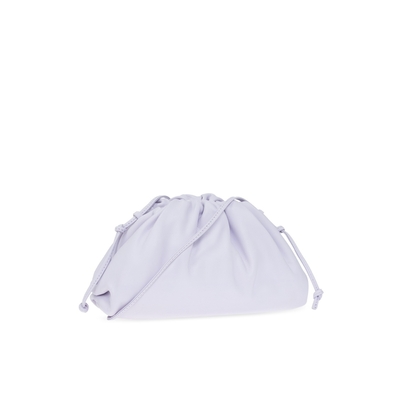 Bottega Veneta Ladies Crossbody. SKU: 585852 V1BW0 5308. Color: Mirth Washed. Size: W 8.5 x H 4.5 x D 4. Bottega Veneta The Mini Pouch Leather Clutch Bag In Mirth Washed. The Mini Pouch leather clutch bag features a ruched silhouette, s a fixed shoulder strap, a main compartment and magnetic fastening.