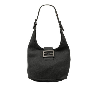 This shoulder bag features a cotton body, an adjustable flat strap, a top strap with magnetic closure, and an interior zip pocket. Fendi Ladies Shoulder Bag. SKU: 2354 26686 099. Color: Grey. Size: 15 x 19 x 20. Pre-owned Fendi Cotton Shoulder Bag 2354 26686 099.
