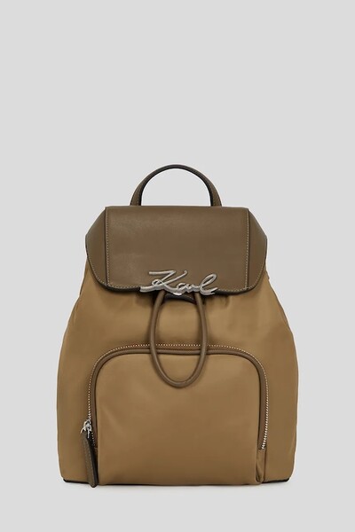 Рюкзак из коллекции Karl Lagerfeld. Изготовлен из комбинации текстиля и синтетических материалов. - Отделение затягивается шнурками и застегивается на магнит. - Карман на молнии спереди. - Короткая ручка для удобной переноски в руке. - Регулируемые ремни позволяют индивидуально подгонять их длину под пользователя. - Не подходит для формата А4. - Высота: 28 см. - Ширина у основания: 24 см. - Глубина: 13 см.