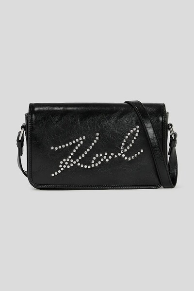 Маленькая сумочка из коллекции Karl Lagerfeld. Застёжка-застёжка выполнена из синтетического материала. - Клапан застегивается на магнит. - Внутренний накладной карман для телефона. - Несъемный, регулируемый ремешок. - Не подходит для формата А4.