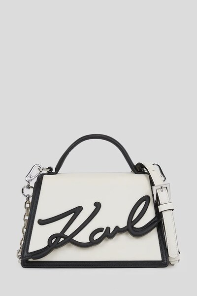 Небольшая сумочка из коллекции Karl Lagerfeld. Дизайн в виде застёжки, выполнен из натуральной кожи. - Сумка для ношения в руке или на плече. - Клапан застегивается на магнит. - Короткая ручка для удобной переноски в руке. - Прикрепляемая декоративная цепочка. - Не подходит для формата А4. - Рельефный логотип.