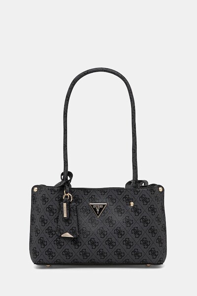 Сумка среднего размера из коллекции Guess. Модель с застёжкой-крючком выполнена из синтетического материала. - Содержит переработанный пластик. - Трехкамерная модель. - Застежка-молния и магнитная застежка. - Длинные ручки для удобной переноски в руке или на плече. - Имеет внутренние карманы, в том числе один на молнии. - Модель оснащена металлическими ножками, которые защищают дно сумки. - Не подходит для формата А4. - Длина ручки: 60 см. - Глубина: 9 см. - Высота: 17,5 см. - Ширина у основания: 27 см.