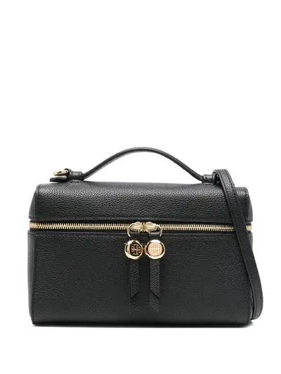 Черная верхняя ручка застегивается на молнию с золотистой фурнитурой. Это изделие поставляется в комплекте с защитным мешком для пыли.