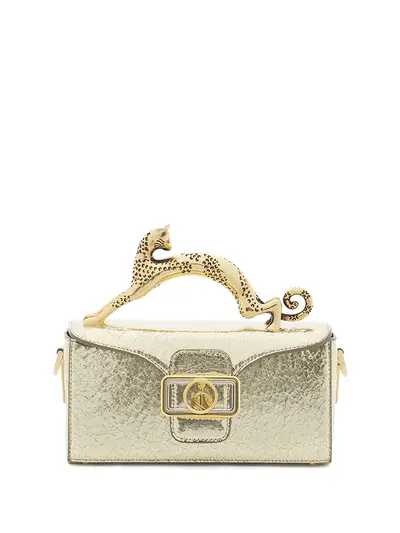 ЗолотистыйТелячья кожаПокрытие с эффектом металликЖатый эффектОткидной верх на магнитной застежкеДекорированная ручка в форме кошкиСъемный верхний ремень-цепочкаЗолотистая фурнитураМеталлический логотипОсновное отделениеВнутренняя вставка с логотипомВнутренний накладной карман