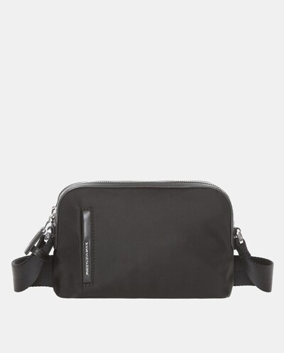 Маленькая сумка через плечо из блестящего нейлона с деталями из черной эко-кожи. Функциональный и легкий, имеет спортивный шикарный вид. Внешние карманы интегрированы в дизайн вещей. Индивидуальный интерьер с несколькими карманами. Металлическая фурнитура, персонализированная застежка-молния и логотип с металлическими буквами.