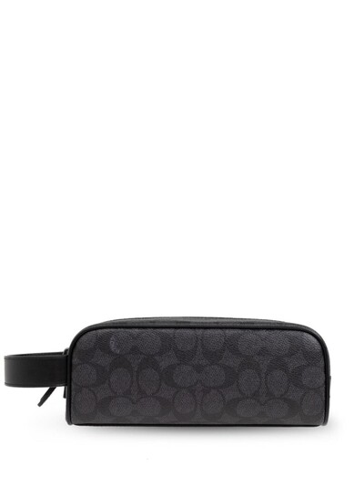 Подробнее о товаре: • темно-серый • узор с изображением монограммы • металл с покрытием • кожаная отделка • застежка на молнии сверху • плоская ручка • карман на молнии сбоку • тисненый логотип внутри • внутренний накладной карман • основное отделение • подкладка