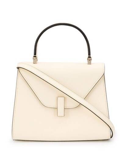Сумка-тоут Iside от Valextra. Верхняя ручка, съемная лямка на плечо, ножки сумки, откидной верх с застежкой-защелкой, внутренняя печать с тисненым логотипом и внутренний прорезной карман. Цвет: белый.