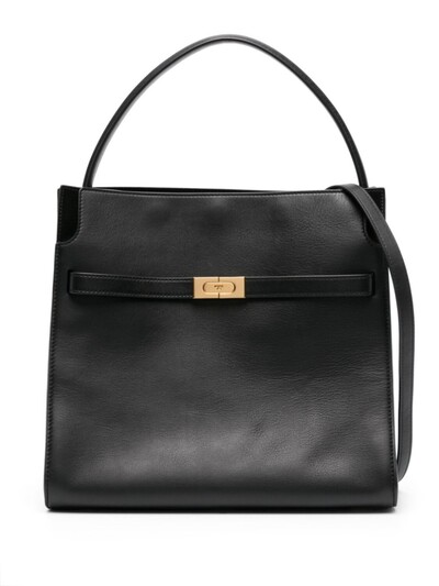 Черный, телячья кожа, зернистая текстура, брелок-футляр для ключей, потайная застежка на кнопках, верхняя ручка, съемный регулируемый ремень на плечо, несколько отделений, тисненый логотип внутри, внутренний карман на молнии, металлические ножки, замшевая подкладка и золотистая фурнитура.
