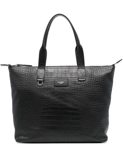 Сумка-тоут из кожи с тиснением под крокодила Dolce & Gabbana, черный bm2375as422 | черный