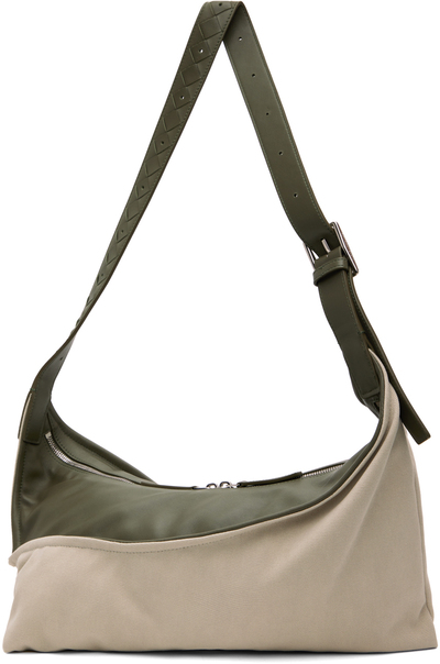 Маленькая зигзагообразная сумка цвета «кремовый с зеленым» Bottega Veneta 15990401 | greige/crocodile