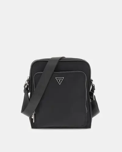 Мужская сумка через плечо с металлическим логотипом и передним карманом Guess, черный 7620837299168 | negro
