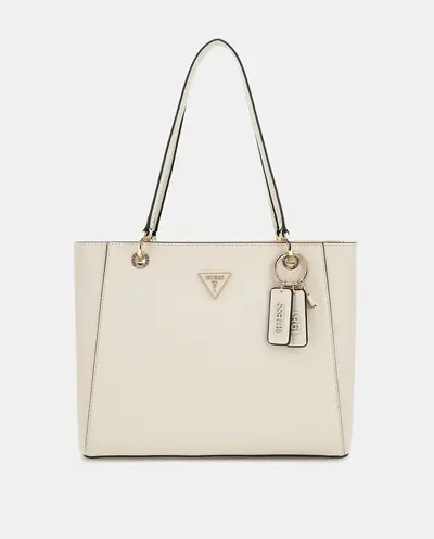 Сумка-шоппер модель Noelle с отделкой сафьян в светлом белом цвете. Оснащена короткой ручкой, персонализированной внутренней подкладкой, съемным брелоком и внешним и внутренним карманом. Деталь с логотипом в центральном треугольнике, комбинирующем цвет с золотым.