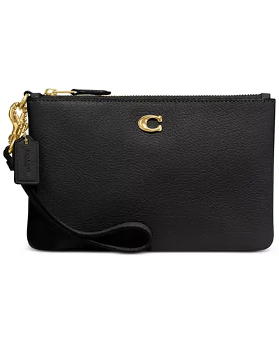 Маленький клатч на молнии из гладкой кожи Polished Pebble Coach, черный 16867514 | black