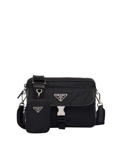 Плечевая сумка из переработанного нейлона и кожи Saffiano Prada, черный 5556535 | black