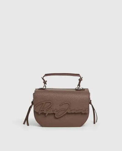 Сумка через плечо Amber Script с короткой ручкой, клапаном на магнитной кнопке, двумя раздельными отсеком, внутренним карманом на молнии, длинным регулируемым плечевым ремнем, боковым ремнем с узлом в качестве украшения и логотипом в виде подписи с шлепками спереди.