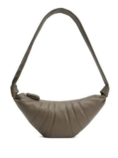 Подробнее о товаре: • хаки • кожа • ремешки с узелками • застежка на молнии • стеганая петля • На вещи могут быть складки и потертости - это не следы использования, а особенности техники обработки, которую используют Lemaire, чтобы подчеркнуть естественную текстуру кожи.