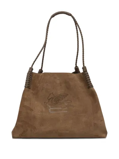 Сумка-тоут Libra среднего размера из замши с плетеной ручкой Etro, коричневый 31369427 | коричневый