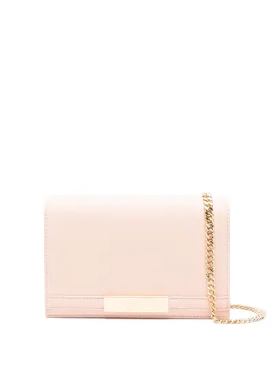 Подробнее о товаре: • светло-розовый • золотистая металлическая планка • цепочный ремень • откидной клапан • магнитная застежка • внутренние отделения