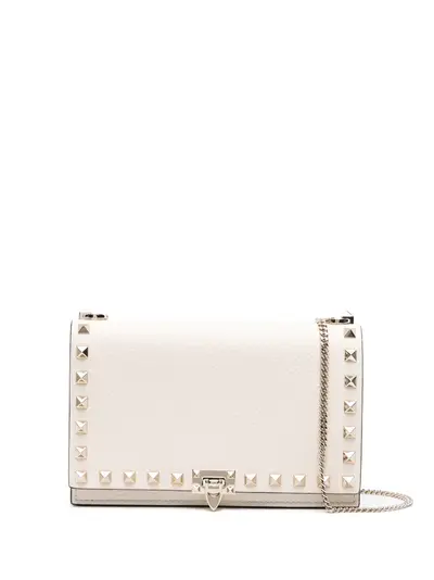 Подробнее о товаре: • кремовый • телячья кожа • зернистая текстура • заклепки Rockstud • тисненый логотип сзади • откидной верх • застежка с поворачивающимся замком • съемный ремень из кожи и металла • замшевая подкладка • тисненый логотип внутри • внутренние отделения для карт • внутренний карман на молнии • основное отделение • золотистая фурнитура • В комплект входит мешок-пыльник для хранения. • К этому товару прилагается сертификат подлинности.