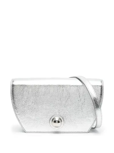 Подробнее о товаре: • серебристый • кожа • окантовка из искусственной кожи • зернистая текстура • эффект металлик • металлический логотип • откидной верх • съемный регулируемый ремень на плечо • основное отделение • внутренний карман на молнии • внутренняя вставка с логотипом • фурнитура в тон • портфельная застежка • В комплект входит мешок-пыльник для хранения.