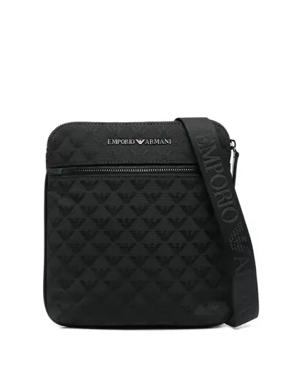 Черный, жаккардовый логотип, ткань в мелкий рубчик, серебристый логотип, серебристый металлический логотип, ремень на плечо с логотипом, строчка в тон, фурнитура в тон, застежка на молнии сверху, регулируемый ремень на плечо, карман на молнии спереди, нашивка с логотипом внутри, внутренний карман на молнии и основное отделение.