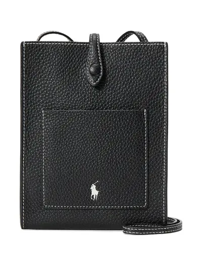 Подробнее о товаре: • черный • зернистая текстура • знаковый логотип Polo Pony • накладной карман • застежка на кнопке • ремень на плечо • контрастная строчка