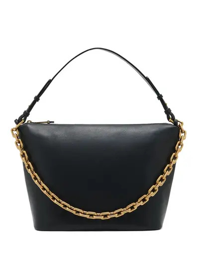 Черная кожаная конструкция, золотистая цепочка, застежка-молния, верхняя ручка