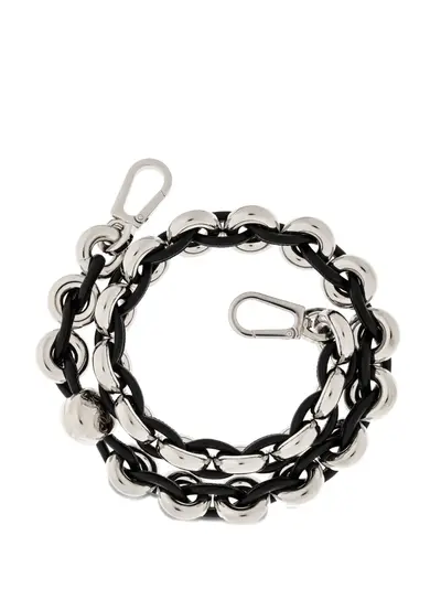 Черный ремешок-цепочка с завязками на шнурке, кожаная конструкция, фурнитура серебристого цвета